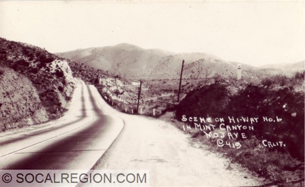 1949 view of US 6 looking toward Soledad Canyon Road. This is also the section of highway visible in the photo above.